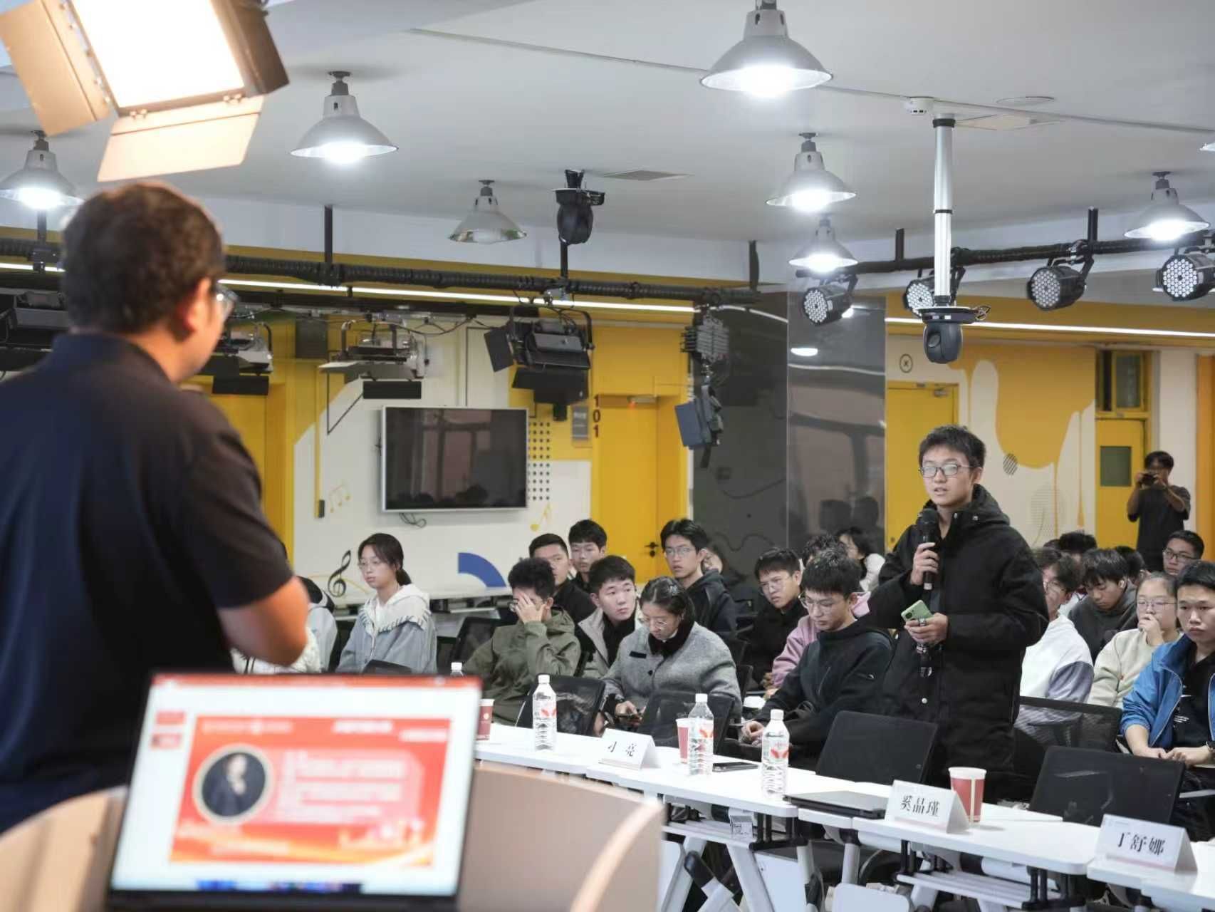 在互動交流環(huán)節(jié),同學們圍繞“科技競賽參與”“程序員職業(yè)發(fā)展”“技術與管理路徑如何選擇”等問題踴躍提問。刁亮結合自身經(jīng)驗耐心解答,鼓勵大家在嘗試和試錯中找到自我優(yōu)勢,并為每一次機會做好充分準備,現(xiàn)場氣氛一度熱烈。