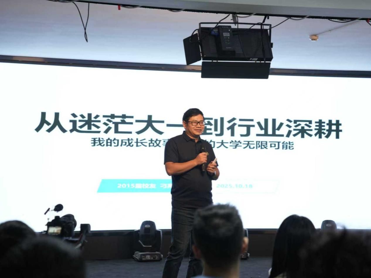 報告中,刁亮通過分享大學求學故事與企業(yè)成長經(jīng)驗,深入淺出地向大家講述了自身如何從迷茫大一蛻變?yōu)樾袠I(yè)精英的歷程。他分享到,在大一期間的關鍵轉折期,通過一次在綠皮火車上與各行業(yè)不同角色人物間的旅途交流中獲得啟發(fā),下定決心以“不掛科、爭保研、攻英語、賽專業(yè)”為大學目標,從而走出大一迷茫、進入實驗室、輔修第二專業(yè)。他表示,“迷茫的本質是沒想清楚階段性目標,青春的美好在于勇于嘗試,但守住底線同樣重要,正是大學期間清晰的目標規(guī)劃與能力積累,為他步入職場后的快速成長奠定了堅實基礎。”談及職場經(jīng)歷,刁亮以加入中興“藍劍計劃”為起點,分享了他從技術新人到管理精英的職業(yè)生涯規(guī)劃之路。